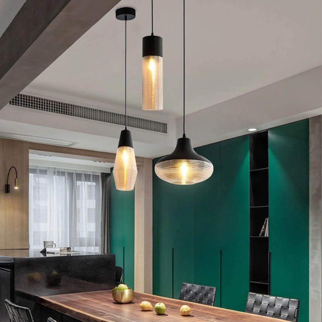 • DESCRIPCIÓN: Colgante plize trio color negro y ámbar para lámparas E27 LED