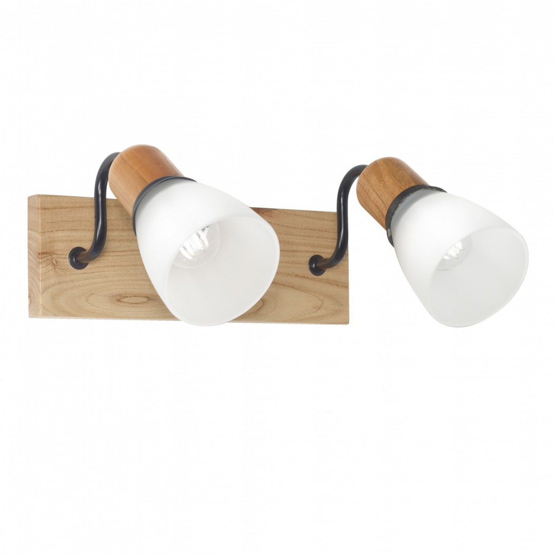 • DESCRIPCIÓN: Aplique de dos luces en madera paraíso con tulipa de vidrio para lámpara E27 LED