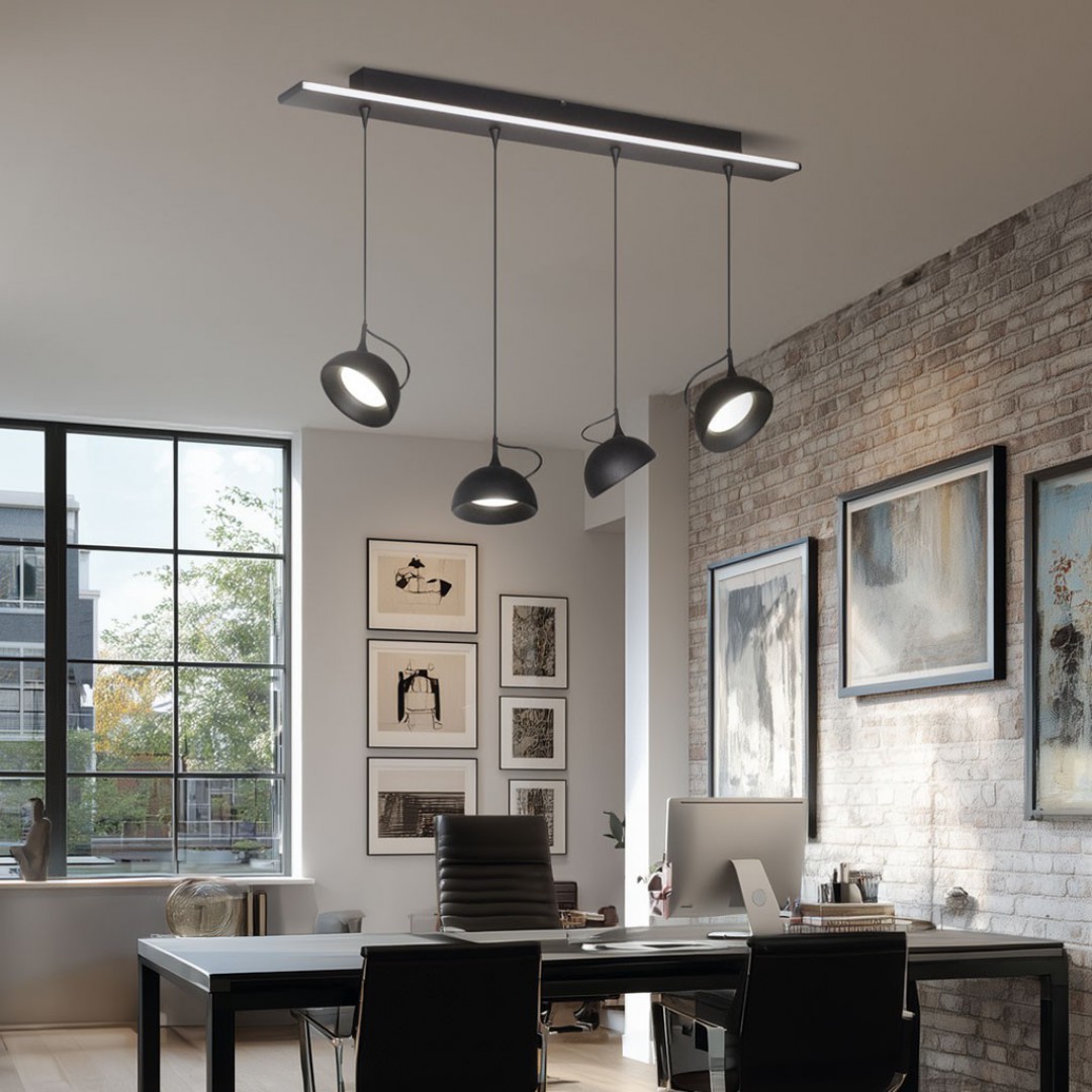 - DESCRIPCIÓN: Colgante doble iluminación un innovador sistema magnético de orientación de cabezales. Son dimerizables por tecla smart o app, lo que te permite regular la intensidad de la iluminación.