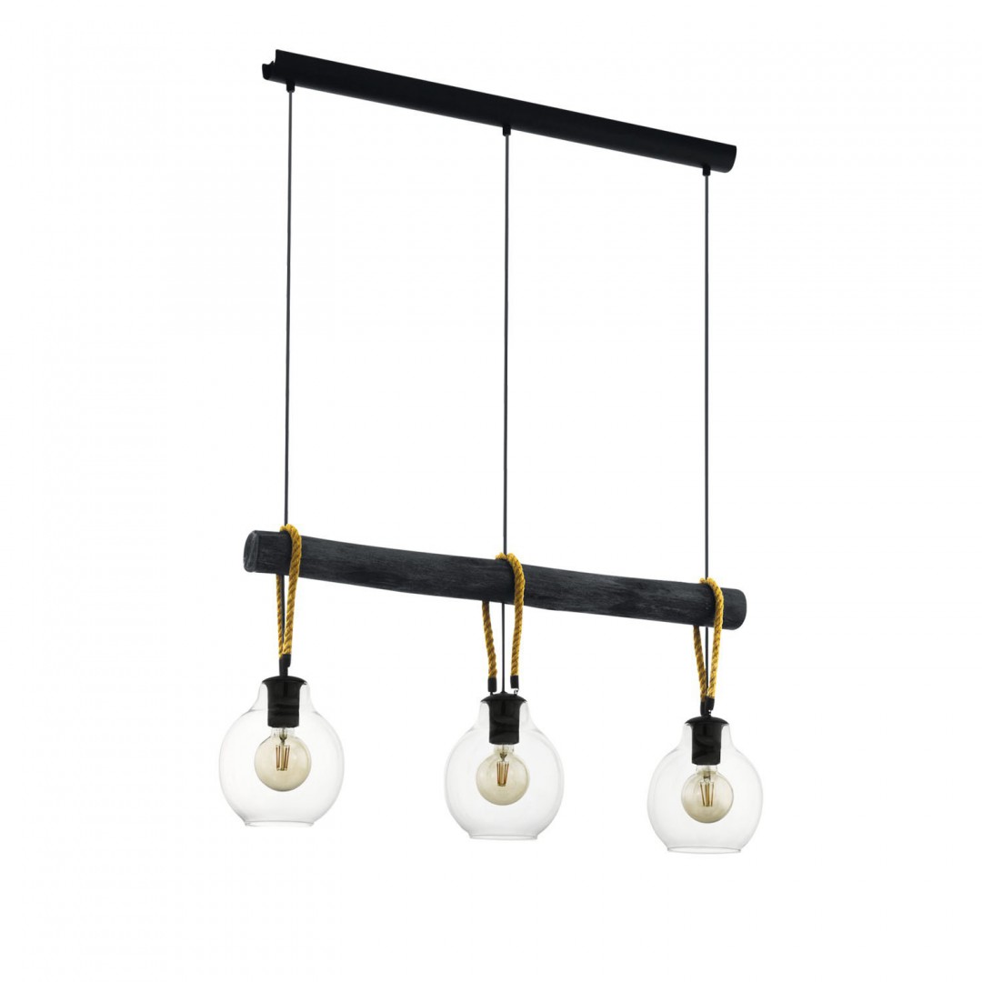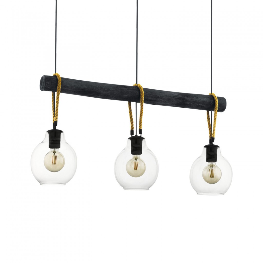 • DESCRIPCIÓN: Colgante de tres luces con tulipas de cristal y detalle con soga