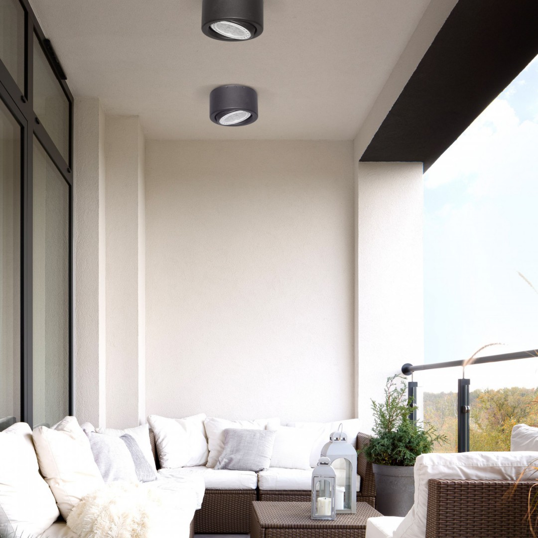 - DESCRIPCIÓN: Aplique de techo monovolumen circular móvil para lámpara AR111 LED