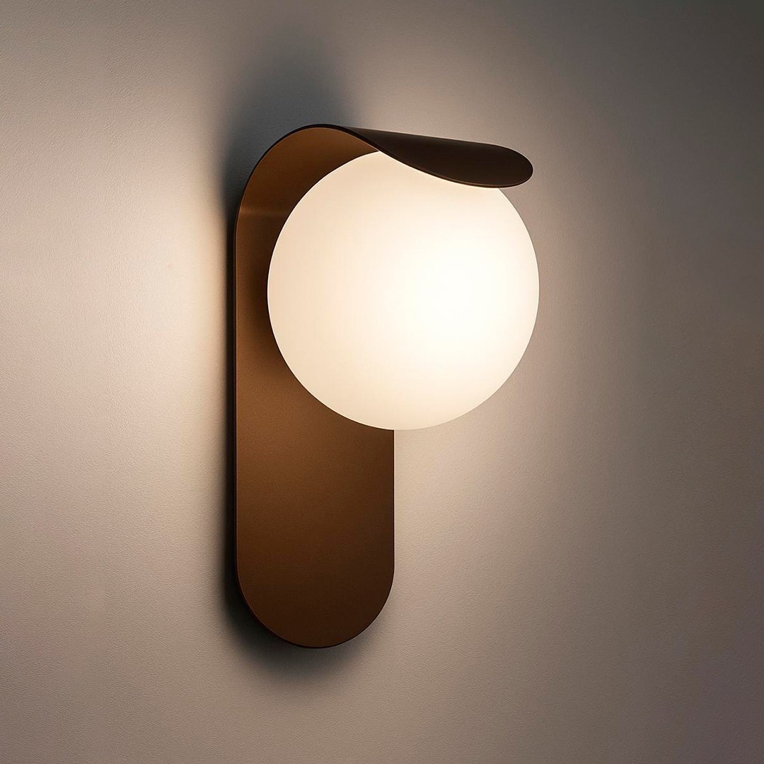 - DESCRIPCIÓN: Aplique de pared curvado con tulipa globo opal color blanco para lámpara E27 LED