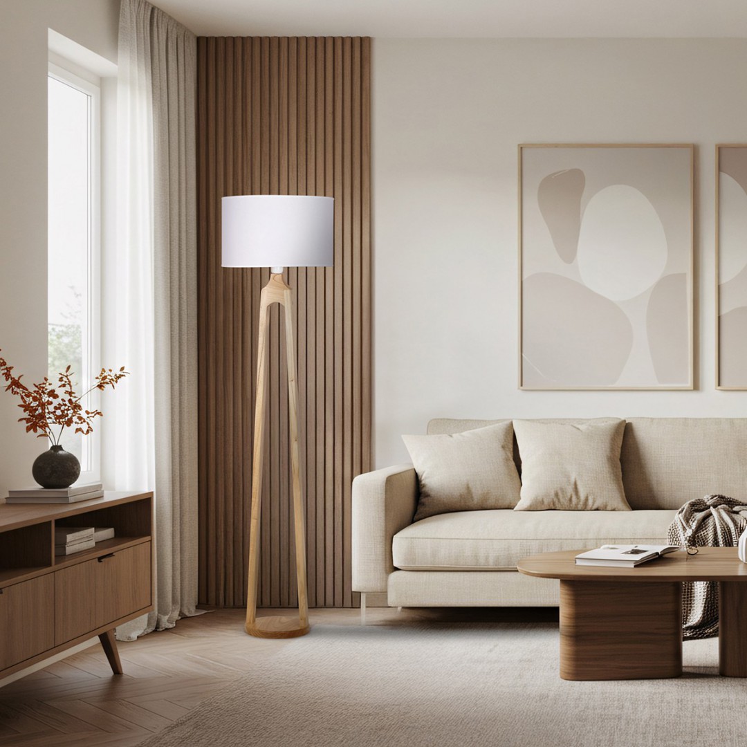 • DESCRIPCIÓN: Lámpara de mesa en madera paraíso y pantalla de lino natural