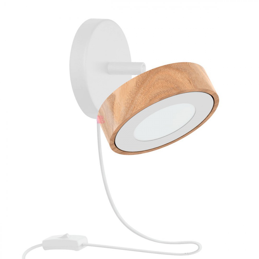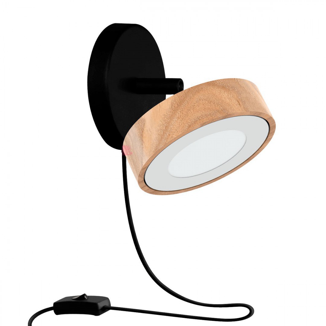 - DESCRIPCIÓN: Aplique de una luz en madera y hierro color negro o blanco, con cable velador y led integrado de 6w.