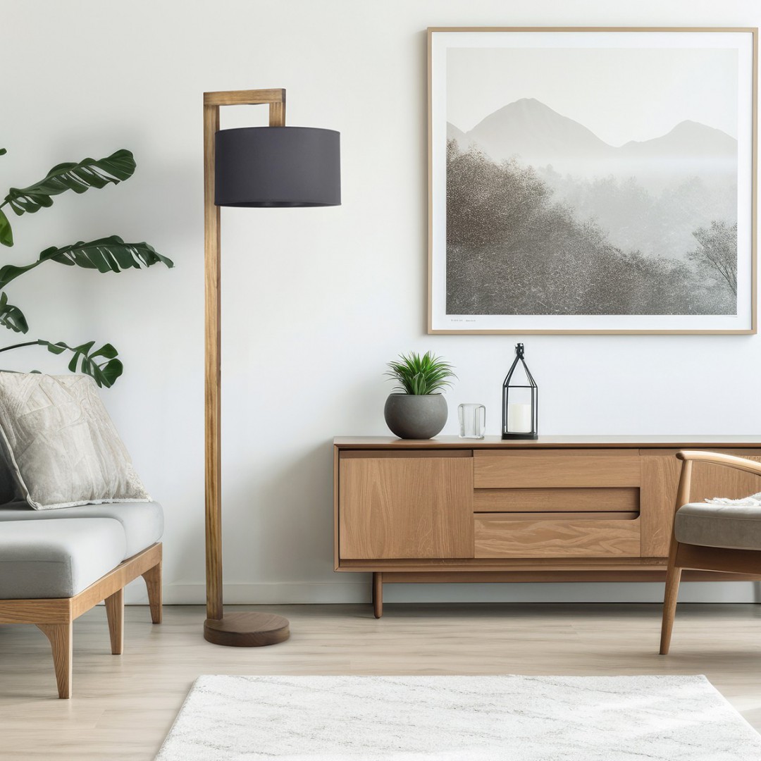 • DESCRIPCIÓN: Lámpara de pie en madera color peteribi para lámpara E27 LED
