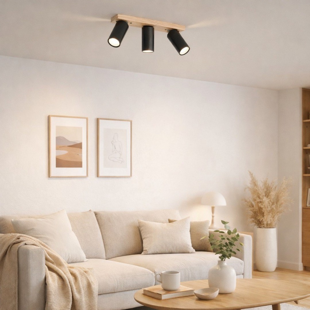 • DESCRIPCIÓN: Aplique de techo de tres luces en madera paraíso y en metal en color negro o blanco
