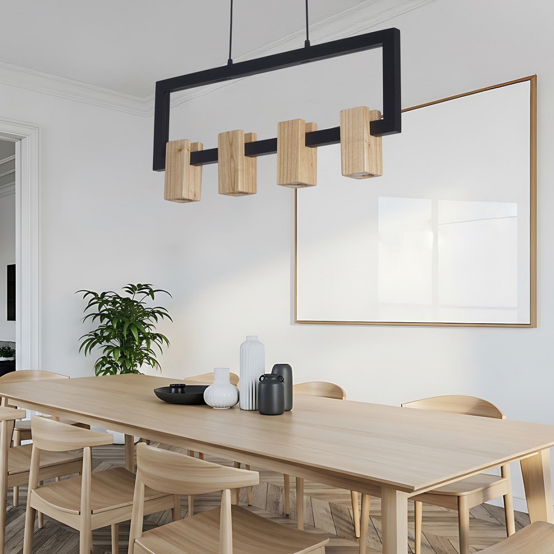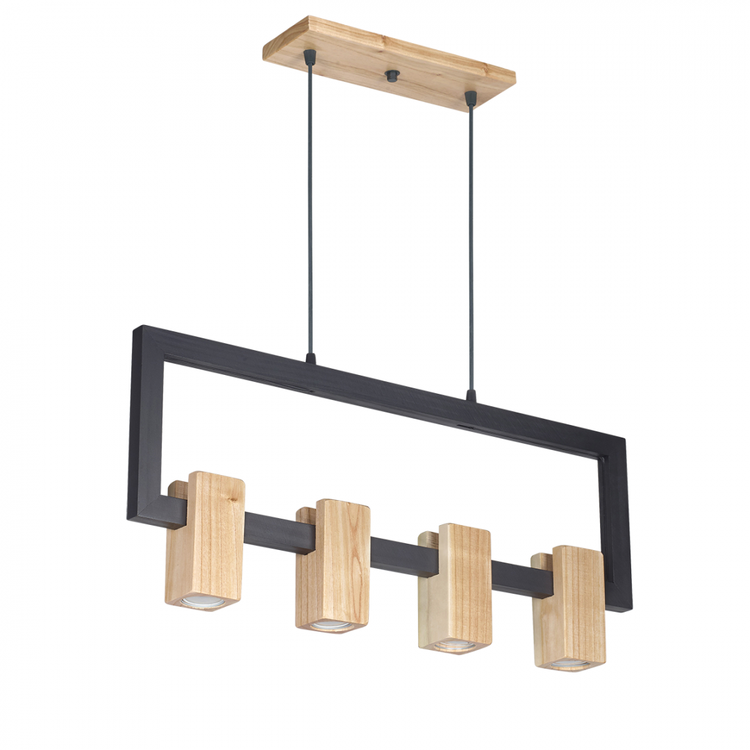 • DESCRIPCIÓN: Colgante palermo de 4 luces en madera paraíso combinado con negro
