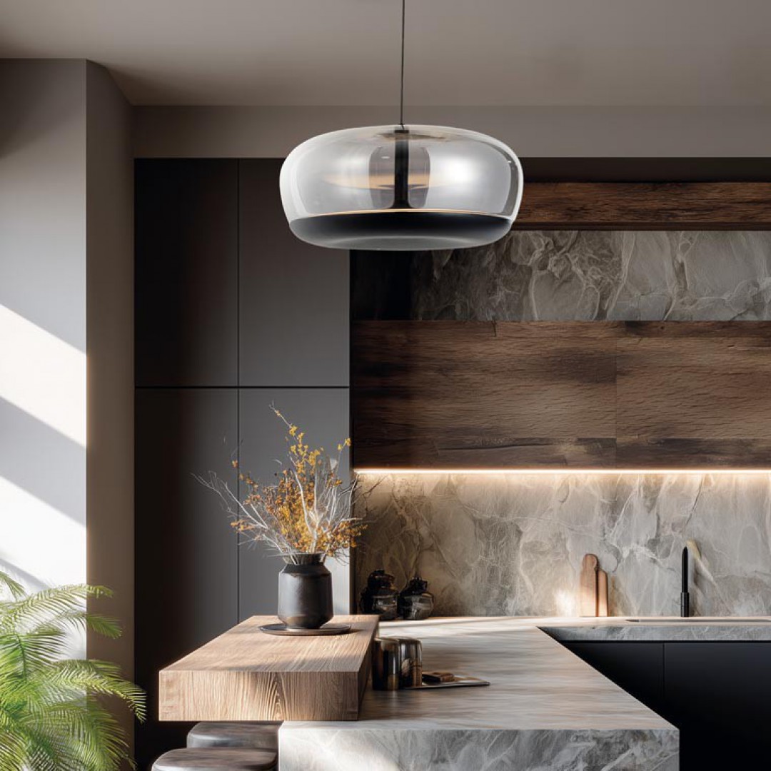 - DESCRIPCIÓN: Colgante de vidrio y aluminio con led integrado de 12+43w