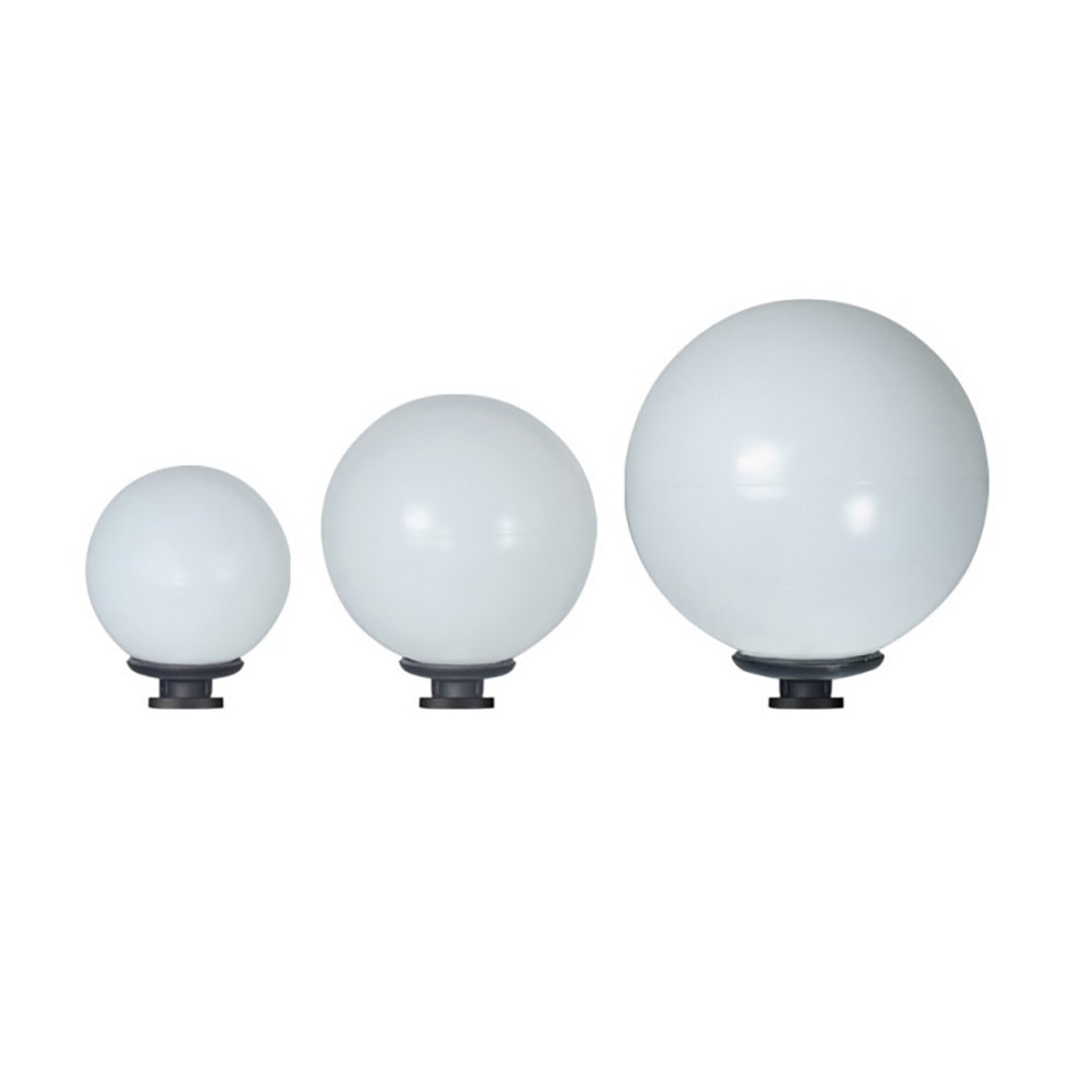 • DESCRIPCIÓN: Aplique de piso para interior o exterior de aluminio. Distribución de luz directa y simétrica.Globo antivandálico opal Disponible en 3 medidas diferentes Ø280, Ø350 y Ø450 mm