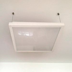 - DESCRIPCIÓN: Colgante para lámparas fluorescentes, construidos en aluminio, para uso interno. Incluyen equipo, capacitor y tensores de acero de 1 metro. Difusor de vidrio arenado templado