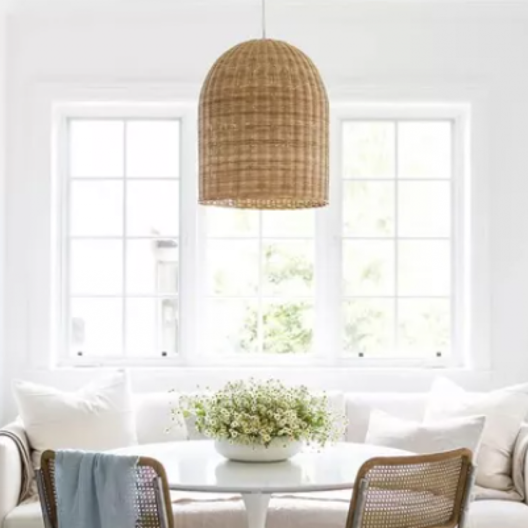 - DESCRIPCIÓN: Colgante de mimbre de una luz para lámpara E27 LED