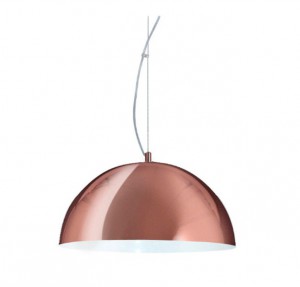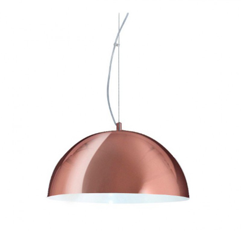 - DESCRIPCIÓN: Colgante de 1 luz con zócalo para lámpara E27 o E27 LED. Terminaciones en cobre, niquel o en colores. Cable cristal y tensor. Interiores: blanco, negro o rojo. Medidas: Ø 40cm.